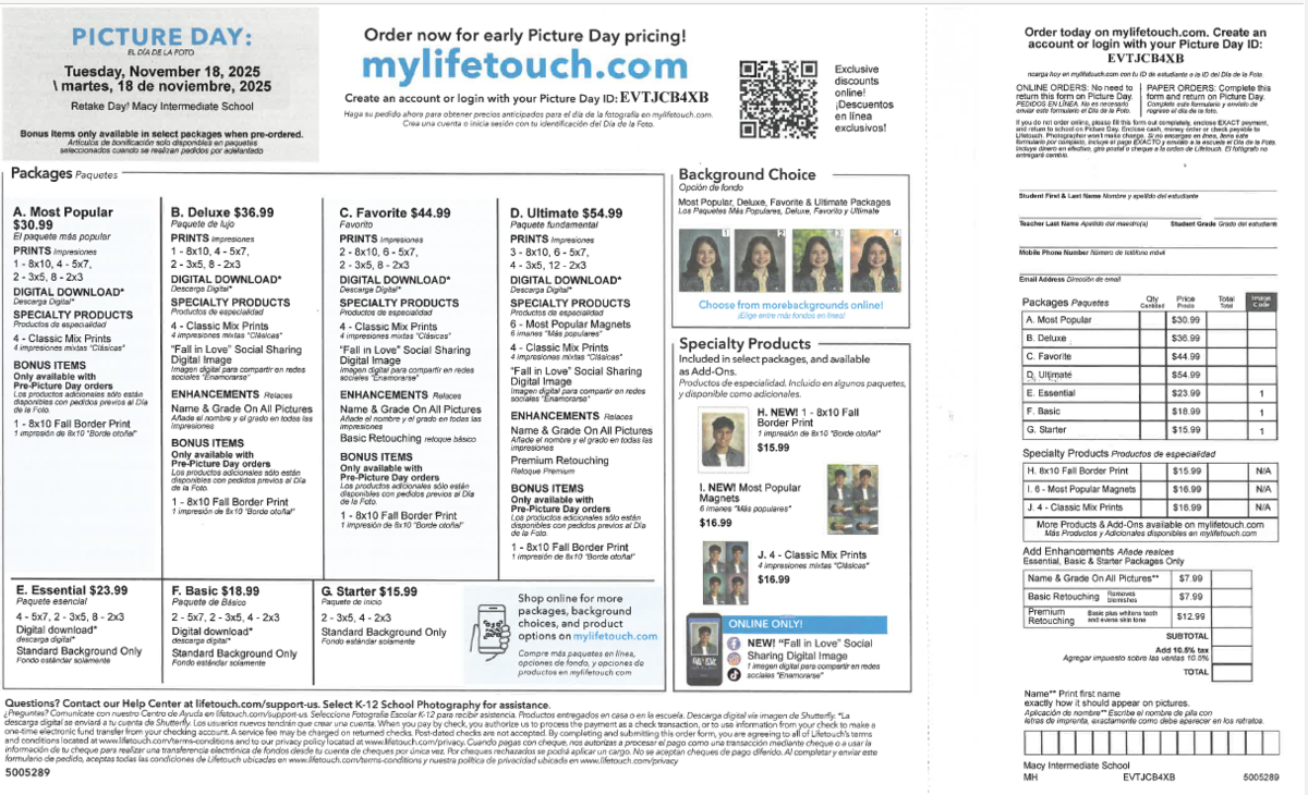 Go to: mylifetouch.com to place your order online. Picture Day ID: EVTJCB4XB