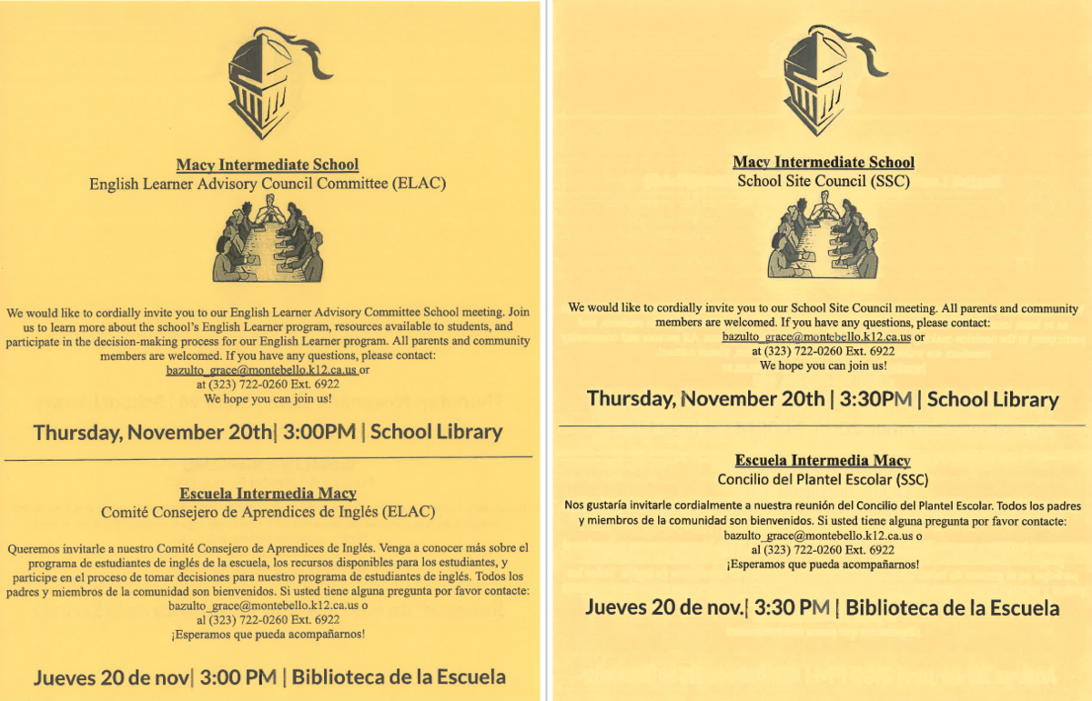 ELAC and SSC Meeting, Thursday, 11/20/Comité Consejero y Junta Plantel Escolar